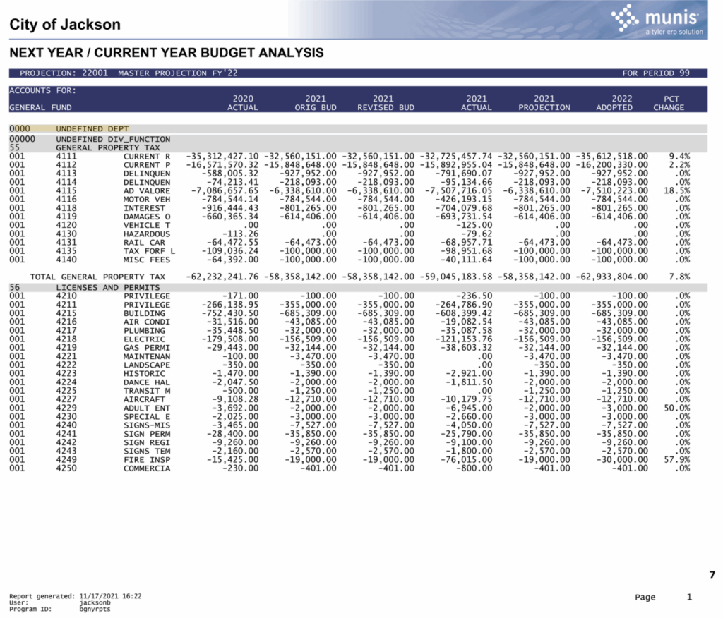 The City of Jackson, MS public budget document – a printout of the chart of accounts. The format of the budget is vitally important because of its ability to frame decisions, provide certain data to decisionmakers, and foreclose answering other questions without additional analysis.